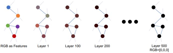 近期的研究找到了有碍 GNN 变得更深的三大根本原因:过平滑(over-smoothing)、过拟合(overfitting)和训练动态变化(training dynamics)。其中后两者也是常见的深度学习问题,而过平滑则是图深度学习方面特有的问题。