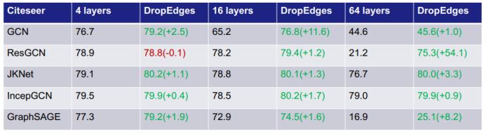 更多详情和实验论证可见腾讯 AI Lab 的 ICLR 2020 论文《DropEdge: Towards Deep Graph Convolutional Networks on Node Classification》。