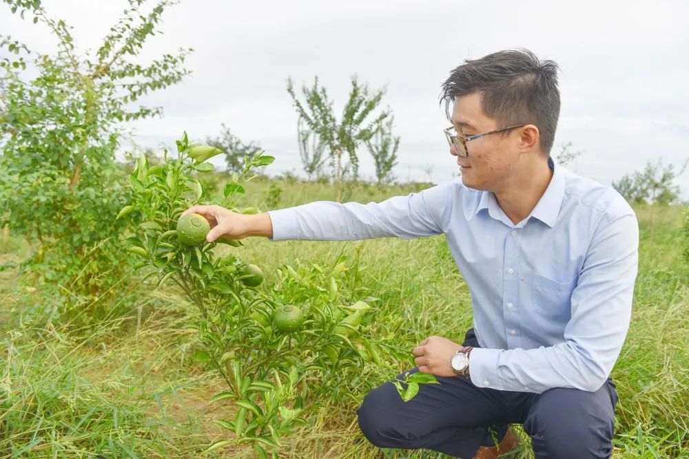 “你们看,这就是丑桔树,它们的个头虽然不高,但都挂果早。”陶欢指着一棵丑桔树上结着的丑桔解释说,别看它的表皮褶皱,看起来一点卖相都没有,它的皮肉可容易剥离,甜度高,在市场上非常走俏,他种植了40亩,全都挂果了,要到冬季才能完全成熟。