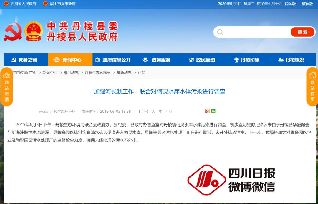 对于村民的质疑,丹棱生态环境局副局长曹茂洪回应:“我是2015年就职的,据我所知,2015年以来这家企业没有发生过污水渗漏事件”。但记者检索发现,2019年6月,丹棱县人民政府网站一篇名为《加强河长制工作,联合对何灵水库水体污染进行调查》的文章显示,新海油脂作为涉事企业,赫然在列。