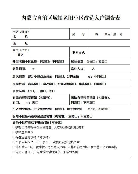 内蒙古自治区城镇老旧小区改造入户