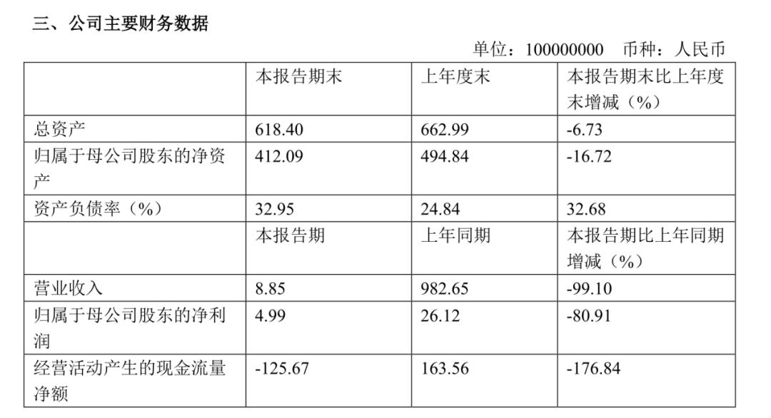 格力集团半年报显示,公司2020年上半年实现营业收入8.85亿,较上年同期的982.65亿下降高达99.1%,主要原因为出售格力电器股权后,家用电器业务板块不再纳入营业收入合并范围内;同期归母净利润4.99亿元,较去年同期的26.12亿元下降了80.91%,主要原因同样是格力电器“出表”所致。