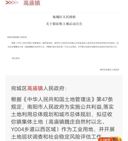 重磅!南阳市政府最新征地通知!