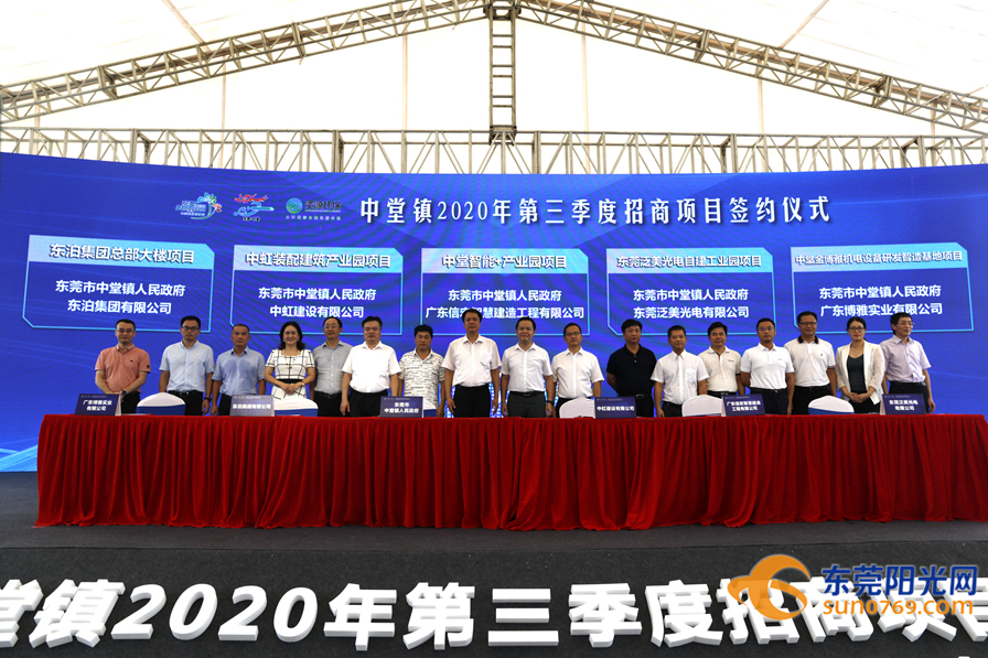 9月23日,东莞中堂镇隆重举行2020年第三季度招商项目签约暨环保智能装备研发生产项目动工仪式。据悉,此次参与签约的共有6宗项目,计划总投资约41亿元,预计年总产值约114亿元,年纳税约3.9亿元。