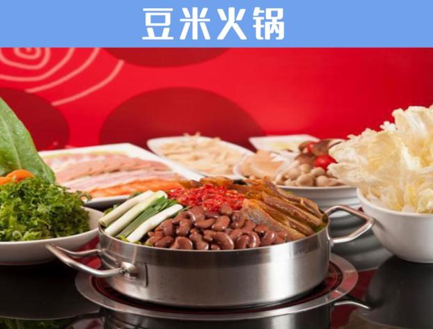 贵阳传统火锅。豆米火锅最开始是由贵州民间的一道家常菜——“豆米汤”演变而来的。在上世纪八九十年代,一家小火锅店的老板把豆米汤盛在砂锅里用来烫涮原料,没想到这样煮出来的汤尝起来味道鲜美、豆米粉质细腻,于是这样的做法很快就得到了食客的认同并开始流行起来。