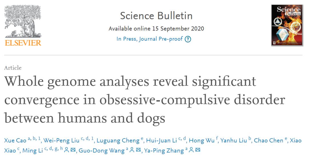近日,中科院昆明动物所张亚平、王国栋和李明等在 Science Bulletin 杂志在线发表了题为:Whole genome analyses reveal significant convergence in obsessive-compulsive disorder between humans and dogs 的研究论文。