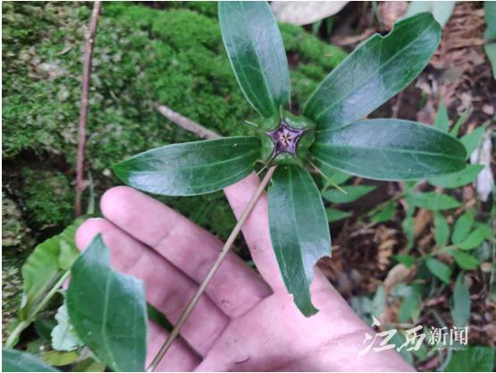 9月上旬,宜春市靖安县林业局技术人员在开展野外种质资源调查时,发现一株叶片异常光亮、厚实的重楼属植物,经武汉植物园胡光万博士鉴定,这是亮叶重楼,本次发现为该种在江西省分布新记录。