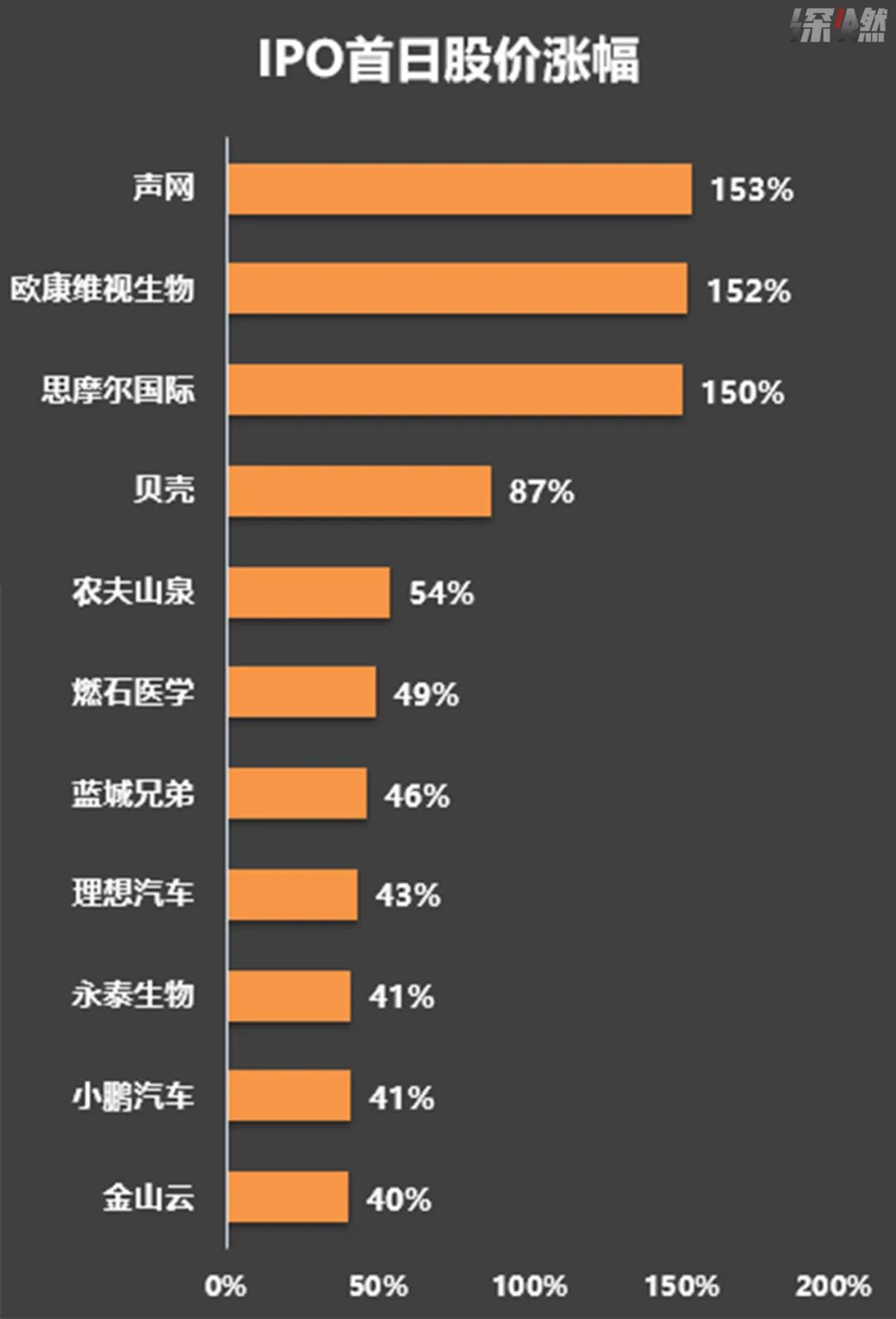 IPO新股首日收盘股价涨幅 制图 / 深燃财经