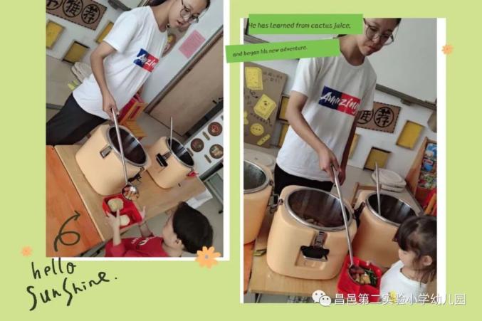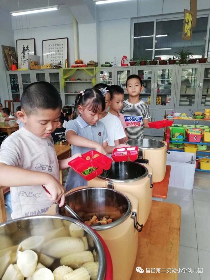 3.中大班的小朋友开展“自主取餐”活动。吃多少,盛多少,吃了不够再来添,做到适度适量,吃饱为好,杜绝倾倒食物、浪费食物的现象。