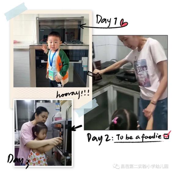 在家中孩子们参观家里的厨房,和家人一起洗菜做饭,了解了家人做饭的过程,懂得要珍惜家人的劳动成果,杜绝“舌尖上的浪费”。