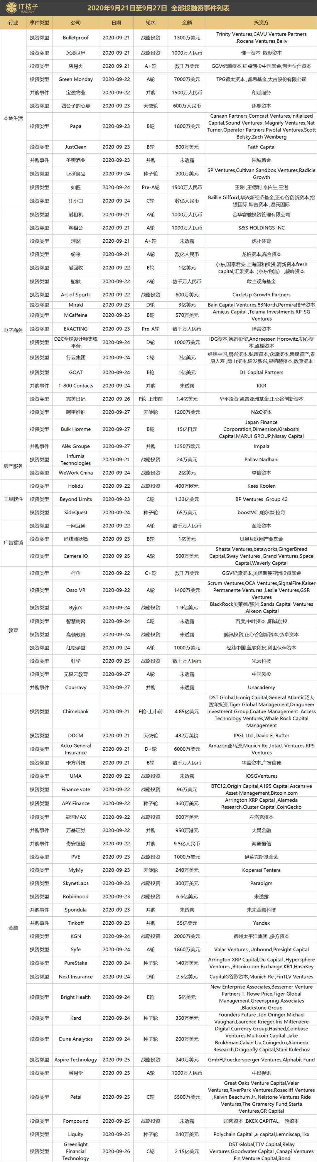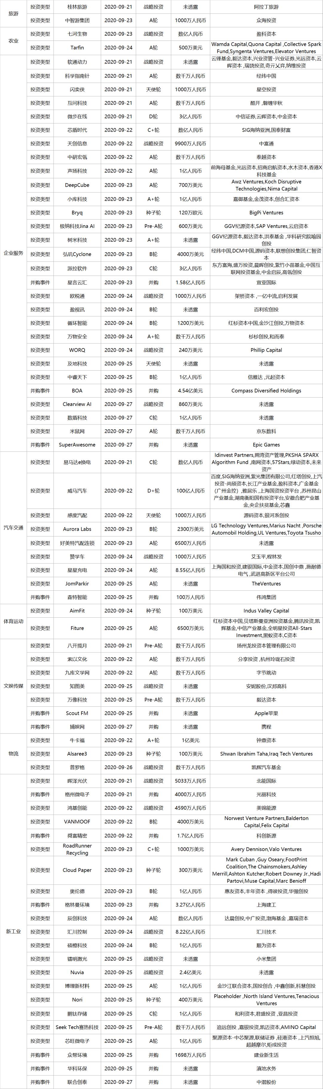 上周全部投融资事件列表: