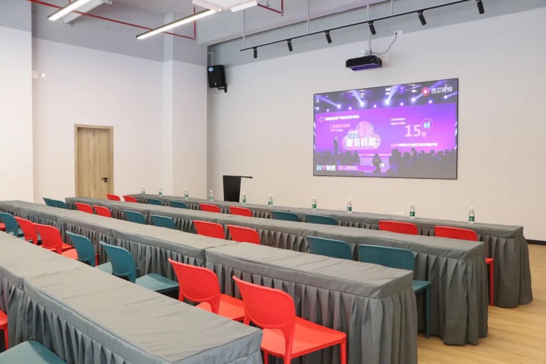 活动路演中心配备专业活动设施设备,有网络直播间、活动交流中心和共享会议室,提供直播带货共享空间服务及电商产业活动交流场景。