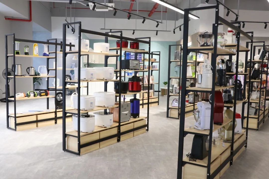 江门市进出口商品展销中心内设名优产品展区和情景直播间,定位是江门供应链选品中心,优质产品的展销窗口,现已有约50家江门企业进场展示。