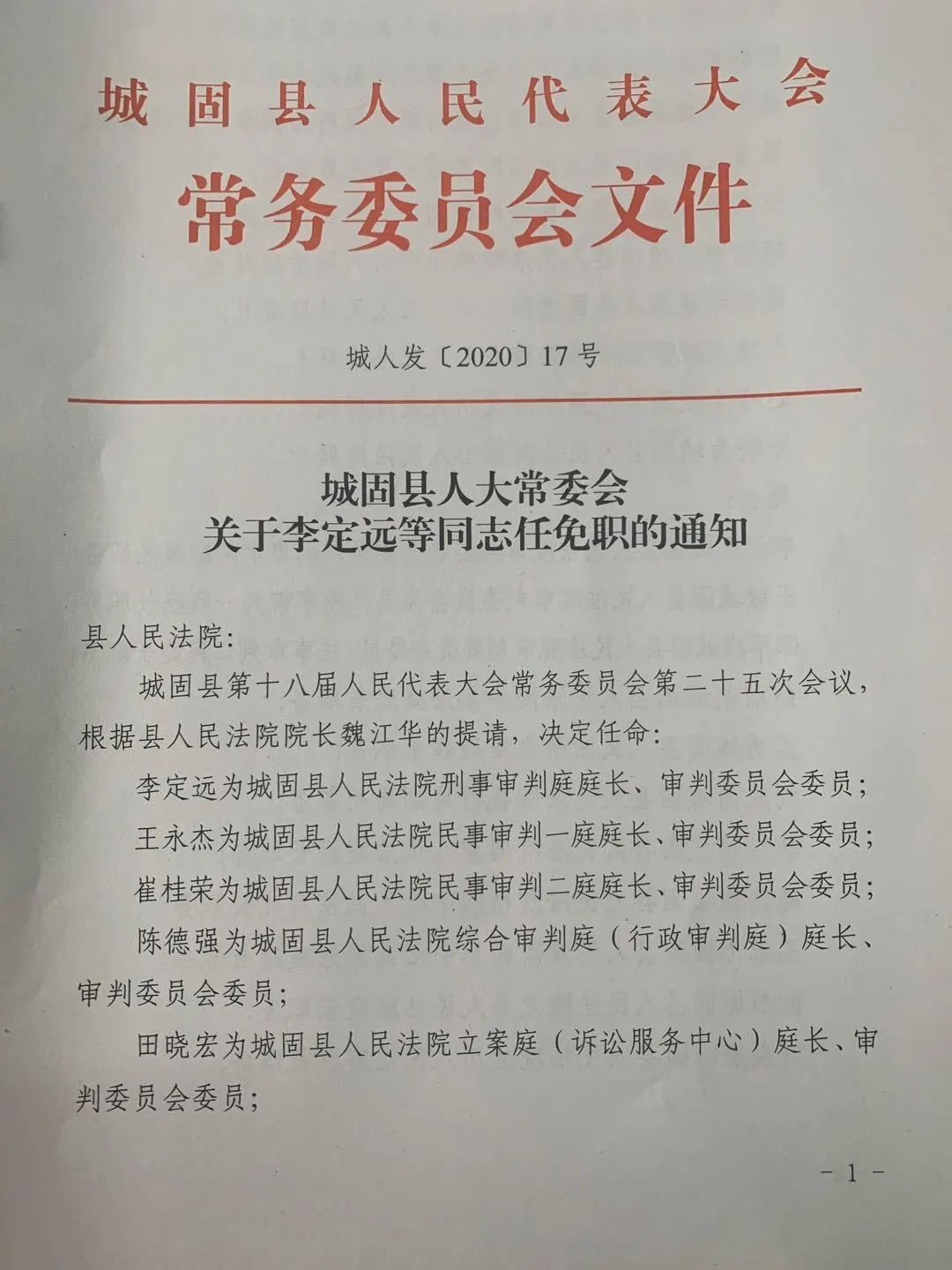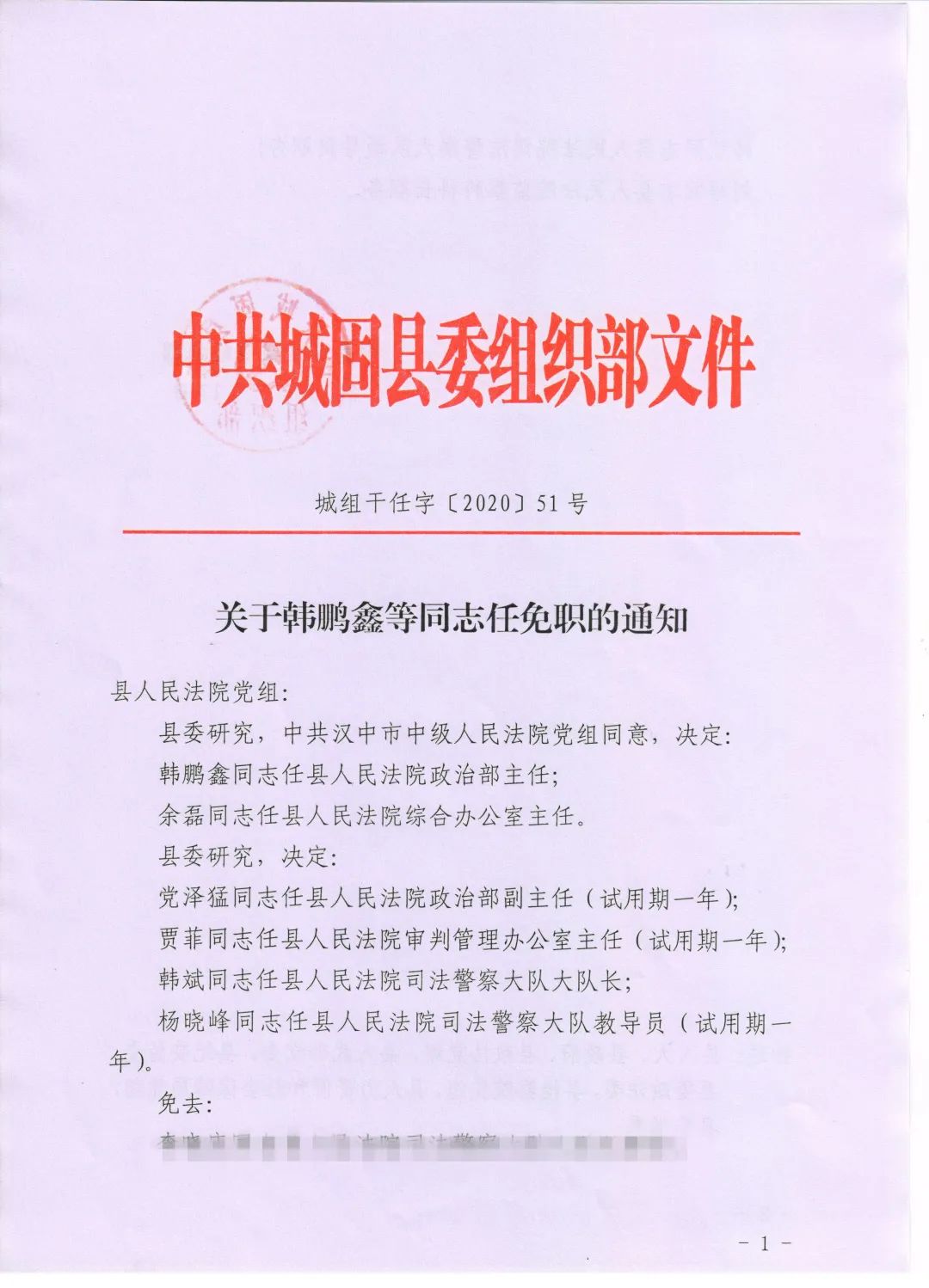 近日,城固县人民法院新调整的内设机构负责人已由县人大常委会和县委组织部任命,按照调整后机构设置全部到岗办公,精简后的11个内设机构工作已正常运行,内设机构改革工作彻底完成。
