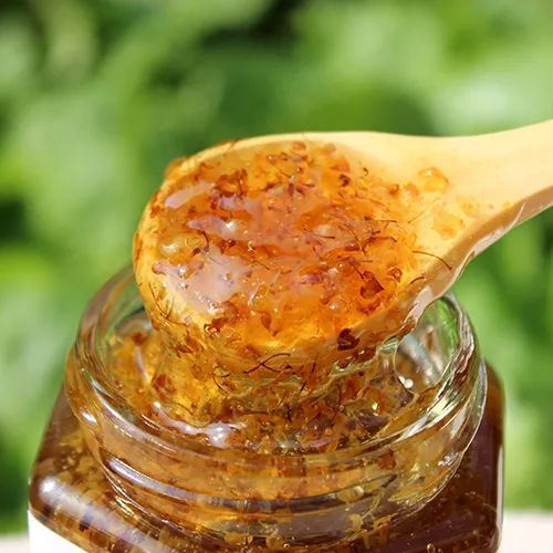 首先把打下桂花收集起来,放进盛器,去除杂质和根枝,作为主要原料,由于桂树生长良好,又喜获丰收,获得二大袋。
