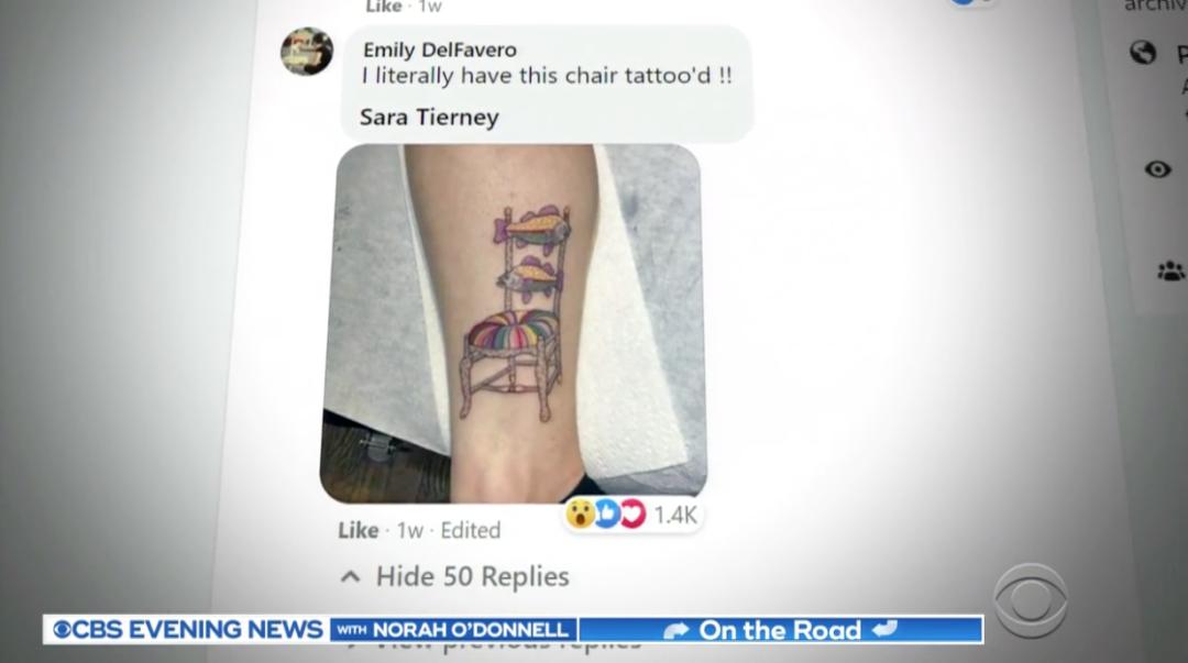 她将纹身的照片上传到讨论组,并兴奋地写道:“我真的有这个椅子的纹身。”