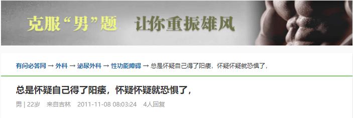 这一数据在生活中的体现有很多,贴吧中的传奇、戒色吧,就与阳痿有着紧密联系。