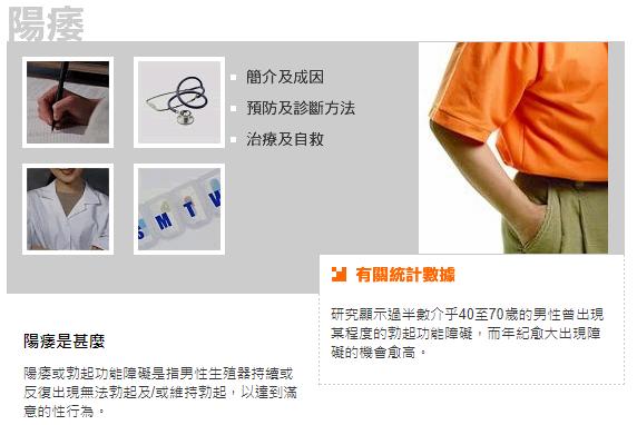 根据香港卫生署的资料显示,有过半数40岁到70岁的男性出现过某种程度的阳痿,且年纪越大出现阳痿的几率越高。