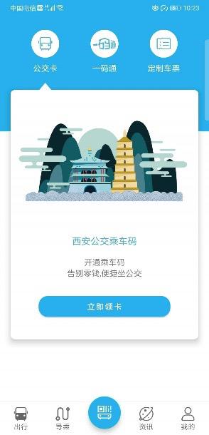 进入西安公交出行APP乘车菜单,点击立即领卡,即可进入领卡流程。