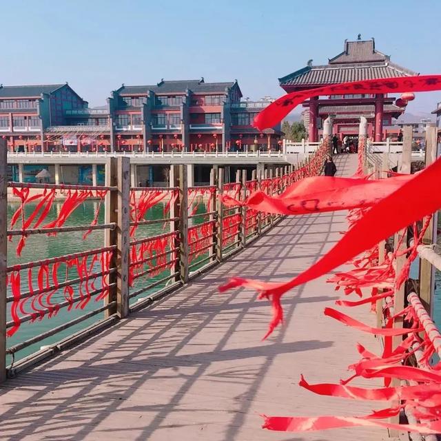 廊桥水城位于西乡县城市核心地带。该项目是对原上渡大桥(危桥)进行拆除后,在原址新建一座长256.2m、宽52m的市政A级大型车行景观商业廊桥,外观风貌采用稳重端庄的汉唐风格。每晚8点到8点半会有音乐喷泉及水幕电影演出,各项水上娱乐设施也基本到位。