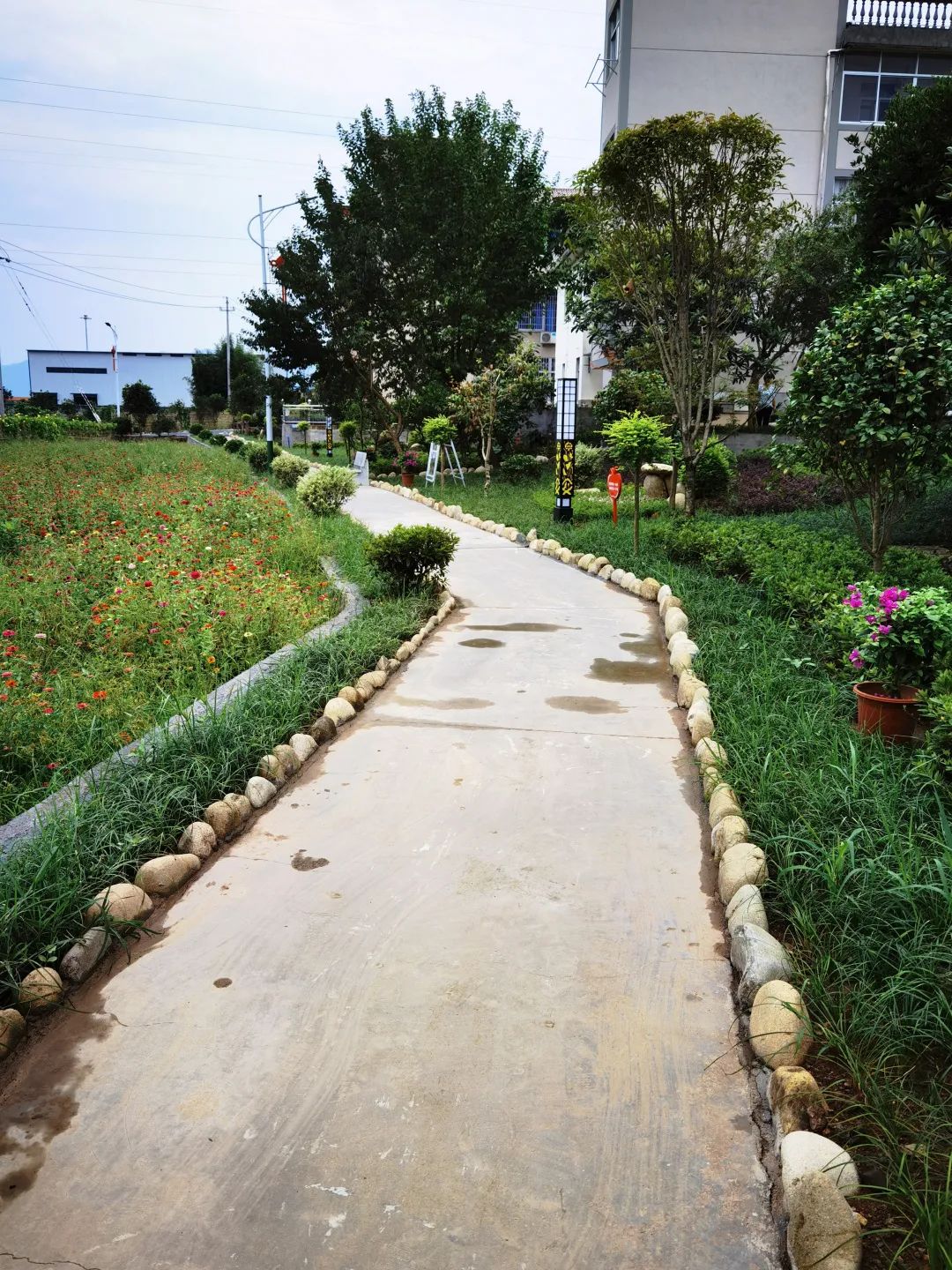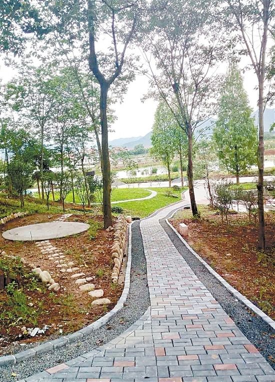 在王村光村,除了几口趣味横生的池塘基地,还有一座供游人休闲健身的山。在泛舟基地一旁的山坡上,规划着占地十多亩的望江公园。望江公园里,山坡的平缓处,修建着一个小型围棋广场;依着山势,有一条石子路,是健步走的极佳场地。修建公园后,村民又多了一个休闲健身的好去处。