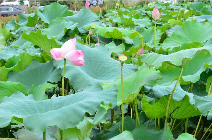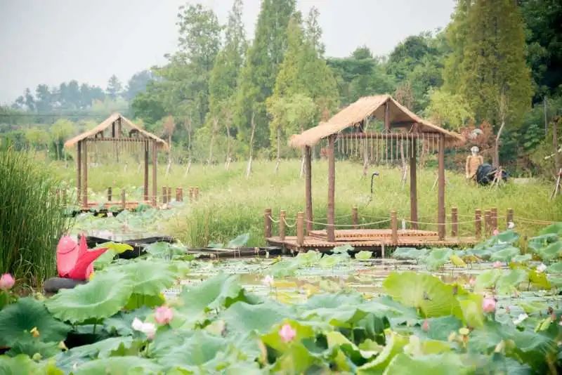 泛舟基地则模拟了野外的水环境,有着不规则的岸缘和自由生长的野草,还有参差的荷花与特地引入的几条小木舟。游客可从小码头自行驾船,或轻舟荡漾与荷花“零距离接触”,或与朋友赛舟嬉戏。望江公园