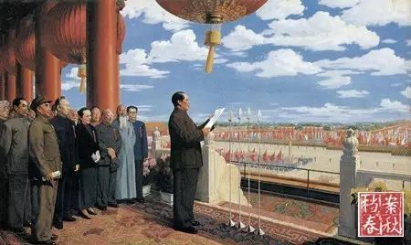 油画《开国大典》,董希文作1949年10月1日,中华人民共和国成立。在开国大典上,人民空军的17架战鹰飞过天安门上空,接受国家领导人和广大人民的检阅。事后,外电惊呼:中国共产党人一夜之间有了自己的空军!