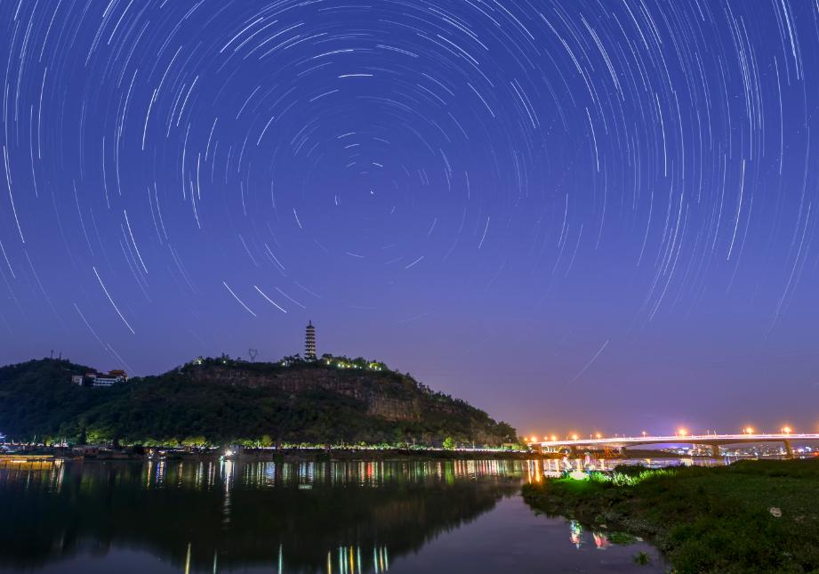 夜幕降临,邀三五好友,行走在文溪,清风、明月,好一幅美丽的江景!夜深了,磐安城一片灯火,桥上路灯的倒影与江岸一齐拥进江中,伴随着一轮圆月,江面上波光点点,这时的江景别有一番韵味。