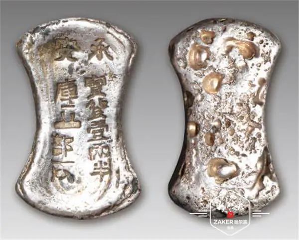 ▲ " 承安宝货 " 一两半银铤在一楼的古代钱币展厅正中,有两枚银铤格外引人注目,这两枚银铤就是文物馆里的镇馆之宝 " 承安宝货 "。