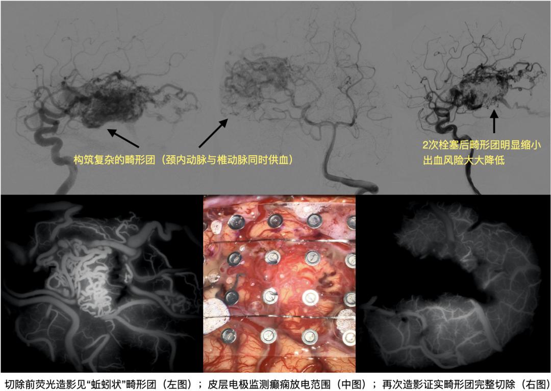 6月3日和7月11日,在电生理监测下,杜世伟团队为珍姐做了两次右侧颞叶动静脉畸形介入栓塞术。