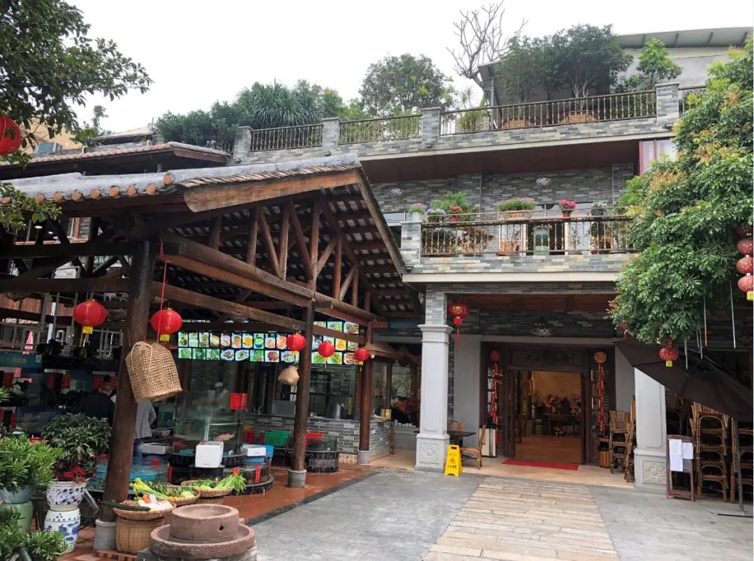 位于容桂的猪肉婆私房菜总店,庭院内以青砖土瓦,亭台楼阁、小桥流水为景观,别具岭南建筑风格。