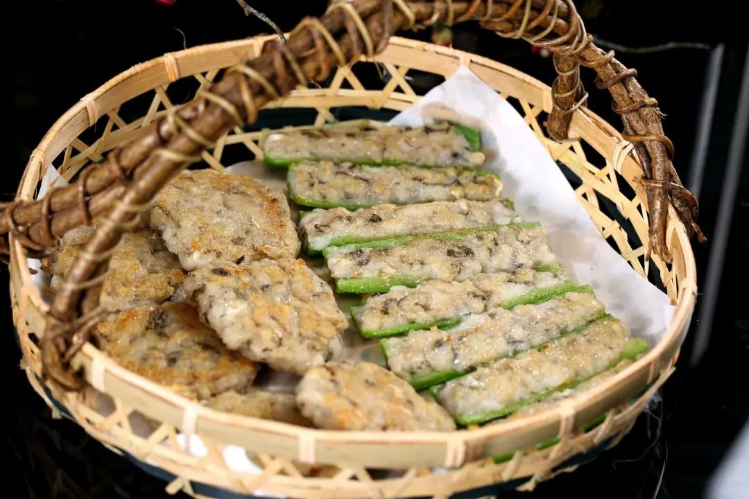 餐厅鲜活鱼,与花椒蒸熟之后,浇上热肉,极嫩极香,渗入花椒的鱼肉味道更加丰富,直击味蕾。- 酿尖椒拼鱼饼 -