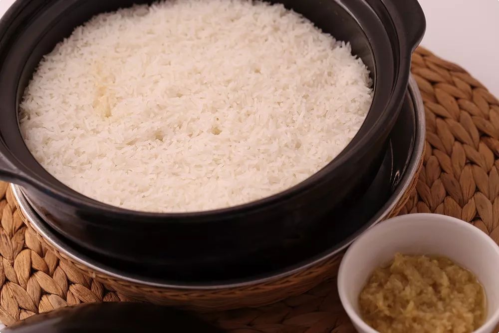当米饭刚刚煮熟的时候,在饭面铺上一层熟油姜蓉,搅拌均匀,再盖上盖子,利用砂锅的余热焖焗两分钟。一打开,饭香扑鼻,品尝一口莹白饱满的饭,才发现万千美味,却敌不过这碗返璞归真的白米饭。