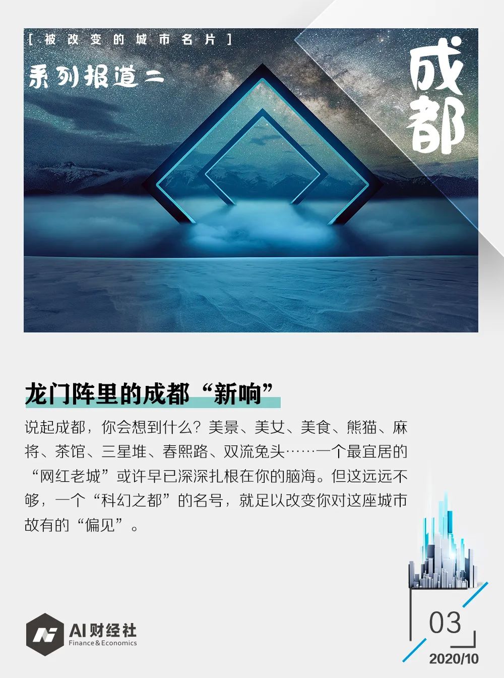 美景、美女、美食、熊猫、麻将、茶馆、三星堆、春熙路、双流兔头……一个最宜居的“网红老城”或许早已深深扎根在你的脑海。但这远远不够,一个“科幻之都”的名号,就足以改变你对这座城市固有的“偏见”。