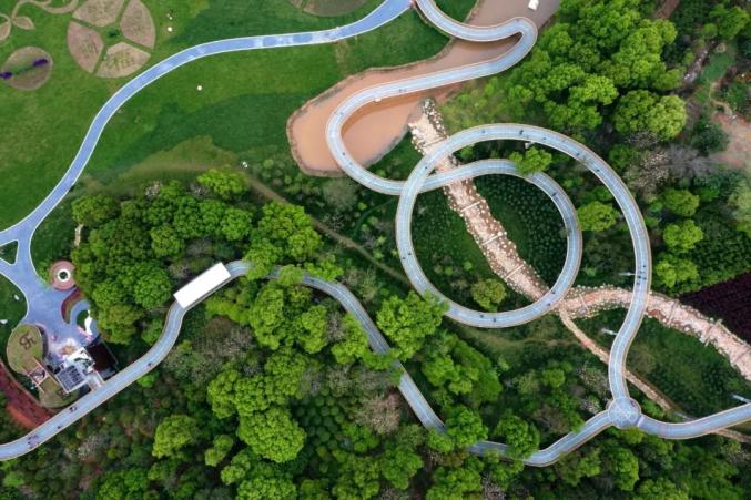 磨盘山森林公园项目位于湾里,总投资约1.6亿元。占地约50.16公顷(约752.4亩),项目以“音律之源,大美湾里”为灵感,采用 “AI智慧”加城市慢行系统的设计思路,将矿山公园、工业文明纪念馆与磨盘山公园用一条长4.3公里、宽3米的“乐道”串联,项目还包含了休息亭廊、园路、游步道、景观设施、以及周边慢行连接系统等一系列生态修复及旅游基础设施提升配套工程。“乐道”将工业遗留地的生态修复与山体公园有机连接,使得少人看、少人走的磨盘山变成一处能走、能看、受居民欢迎的森林公园,让周边居民亲近自然、感受自然。
