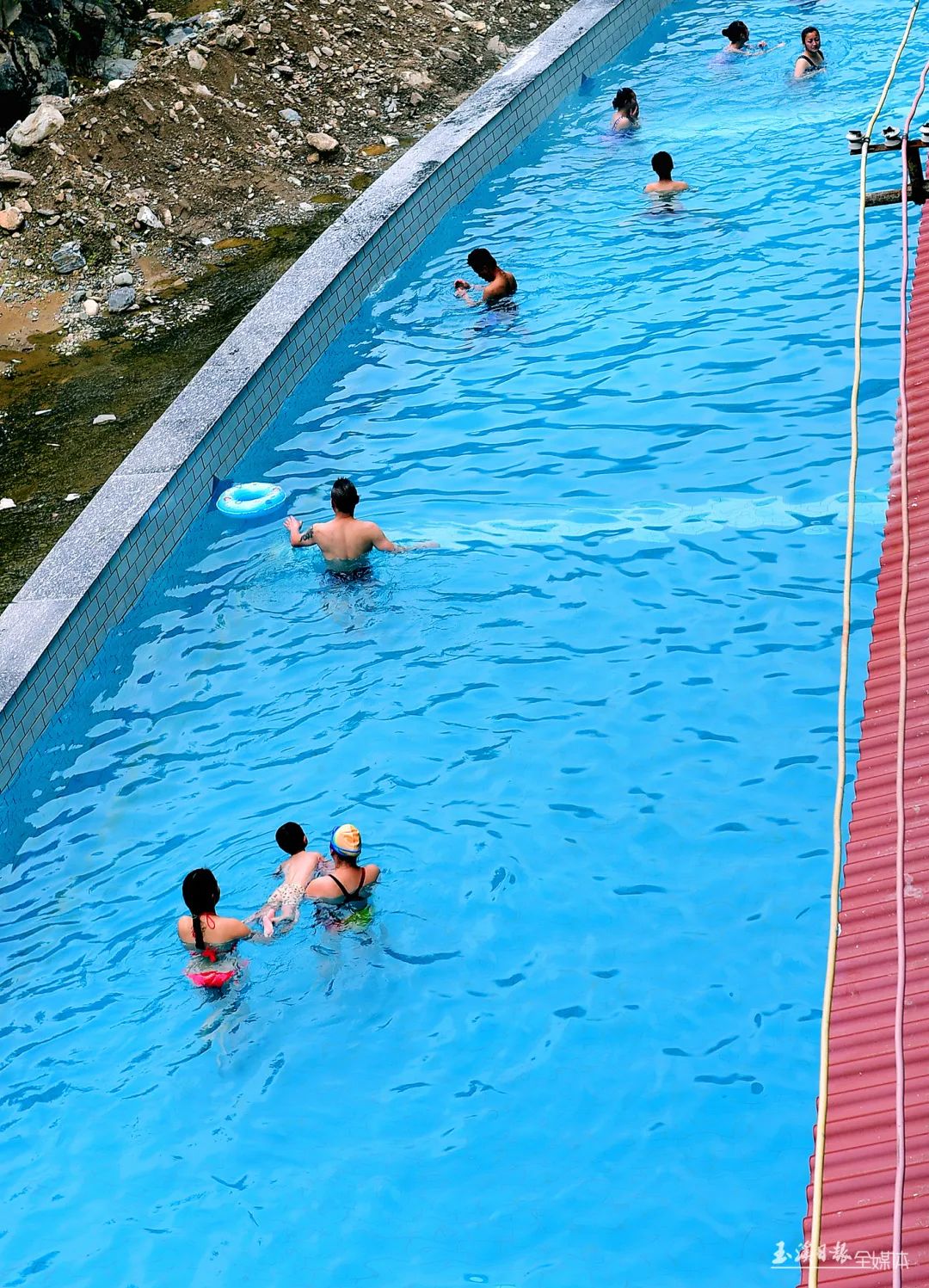 160多米长的草木棚依河而建,构成了独特的“无火之炊、水上长街宴”,在享受温泉的同时,还可以品尝沸水煮的元江美食。
