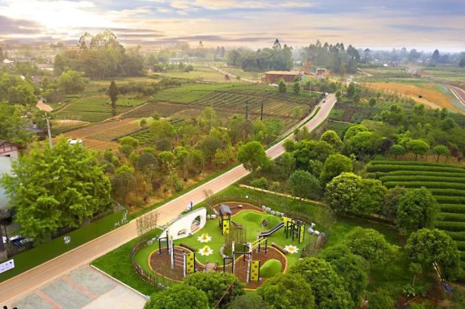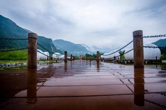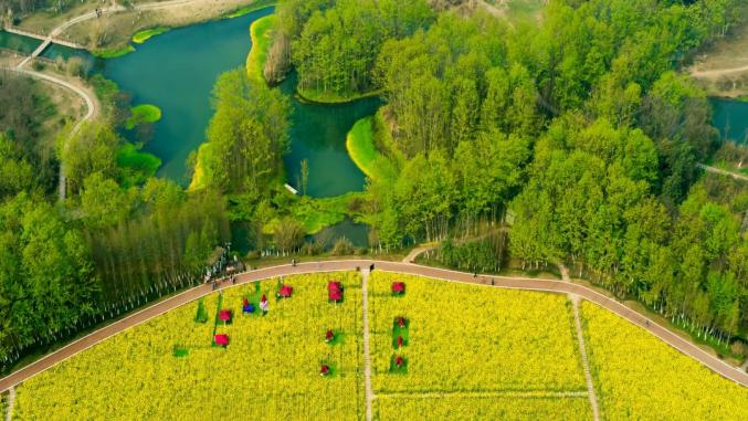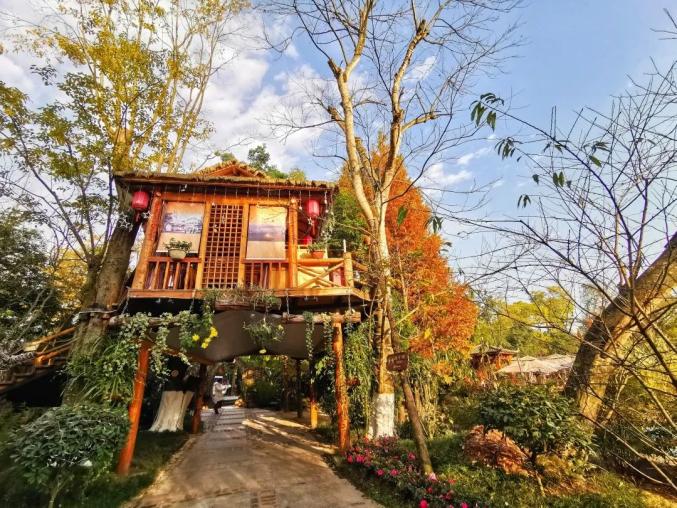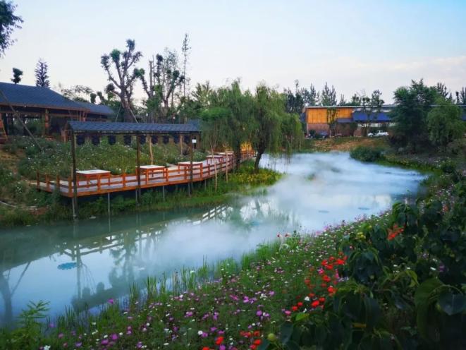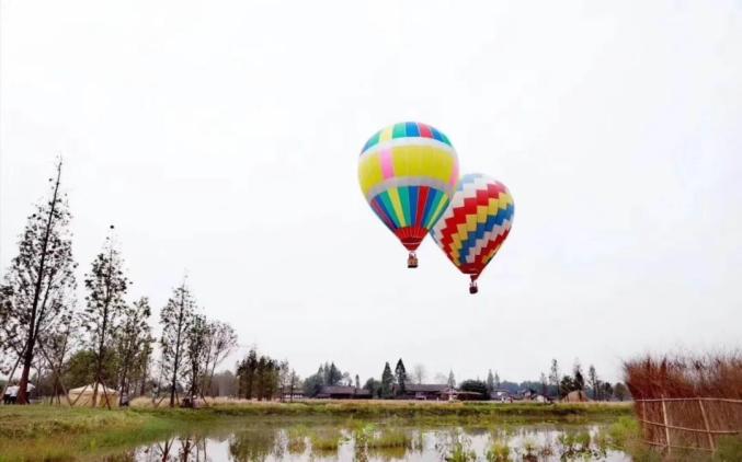 景区区内有水立方湿地公园、江安河绿道等景点,绿树成荫、如诗如画,造型雅致的乡间屋舍也让人更加亲近田园生活。