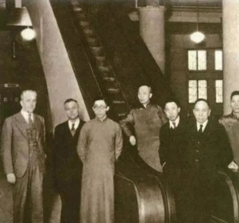 20世纪40年代大新公司内的上海第一部自动扶梯(右二为蔡昌)