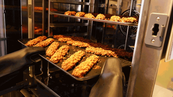 大众点评@梧桐咔嚓咔嚓入口爆浆的泡芙~现在还有蓝莓新口味!长条的泡芙现场烤制,外皮裹满了扁杏仁,馅料都是现点现灌,甜而不腻。一定要趁热吃,才能品尝到酥脆的口感!