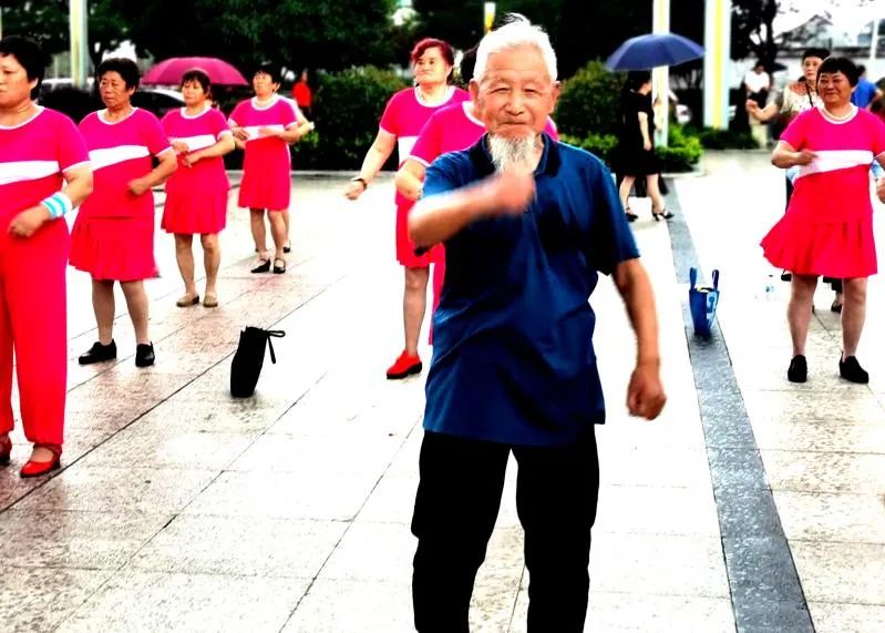 九旬白胡翁,劲爆广场舞,成了黄渡市民广场一道独特的风景。
