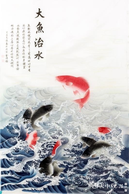 在这批麦草画艺人心目中,宿鸭湖不仅仅是一个亚洲面积最大平原人工水库,更是他们从小生活过的地方,宿鸭湖平时波平浪静,雨季时拦蓄板桥、薄山水库等上游来水,蓄水面积239平方公里,常年水面11万亩,出产的鱼达30多种,其中产量最多的是鲤鱼、鲫鱼、鲢鱼。是中国人工修建的面积最大、堤坝最长的平原水库,是一座以防洪为主,结合灌溉、发电、养殖、旅游等多项目综合利用的大型水利枢纽工程。有“人造洞庭”之美誉。“这些浪花中飞跃的身姿,正是人与自然和谐相处的典范,我们为大鱼跃龙门点赞,为赶上这个好时代点赞。”