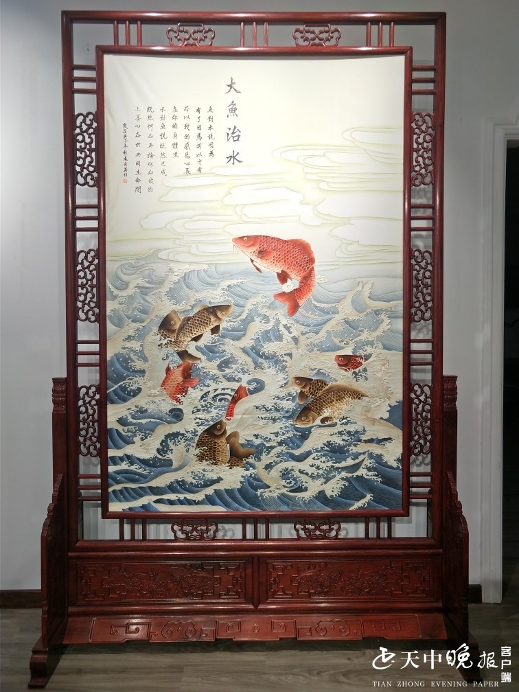 “这幅麦草画屏风经过多次创作打磨,从接到任务到完成只有短短的1个月不到的时间,我们不计成本,大家心往一处想劲儿往一处使,每一朵浪花,每一条鱼儿的鳞片都要做到准确生动传神,这不仅仅代表汝南麦草画更代表中国农民的智慧创造与心血结晶,更是代表汝南人民吃苦耐劳,勇争上游,百折不挠的拼搏精神。”袁月英介绍,屏风高2.5米、宽1.6米,共有9条鱼儿,包括一条正奋勇跳跃的鲤鱼,还有8条姿态各异的鱼儿在浪花间腾挪跳跃。每一处细节,每一个线条都要准确,最后的成品做到绝无瘕疵。据悉,开幕式上这座麦草屏风将正式亮相。