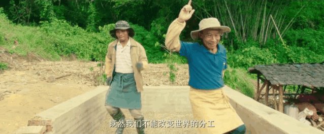 影片结尾,三位冲在前列的家乡建设者,也喊出了豪迈的口号: