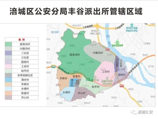 撤销后,原关帝派出所管辖区域的关帝场镇社区、致富村、水塘村、字库村、齐心村、清水村划归丰谷派出所管辖。(办公地址:绵阳市涪城区丰谷镇南街13号,报警电话:0816-2810205)