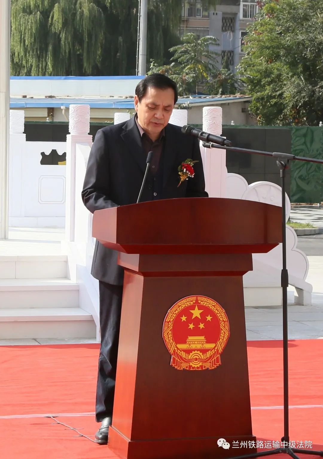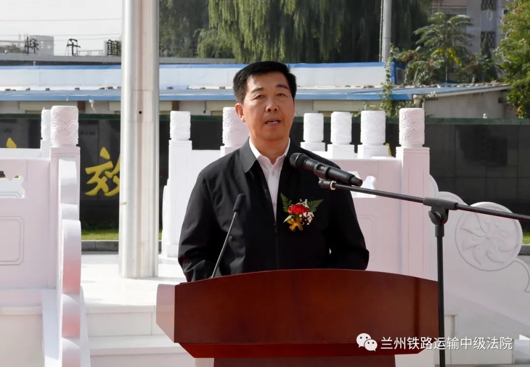 张海波院长和杨伟军董事长共同为兰铁中院、涉铁纠纷诉调对接中心揭牌并参加了升旗仪式,随后杨伟军董事长发表了致辞,张海波院长作了重要讲话。