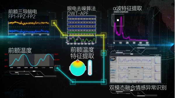 系统示意图头戴一个传感器,通过前额温度、脑电监测、眼电算法就可辅助识别是否患有抑郁症?基于在心理生理计算、情感计算、人工智能领域的长期耕耘,胡斌教授在心理生理信息的有效量化“感”+“知”及持续性监测等问题上取得重大突破,成果先后获得高等学校科学研究优秀成果奖技术发明一等奖、国家技术发明奖二等奖、第二十一届中国专利金奖。其核心技术已在多家企业及医疗和科研机构成功推广应用,取得了显著的经济和社会效益。