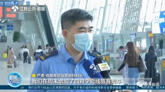 铁路南京站营销科科长严勇:我们在周末增加了四对宁启线列车,沿线的海门、海安、如皋的周末出行将更加便捷。同时宁启线6对列车的车次发生变化,旅客在购票的时候要注意一下。
