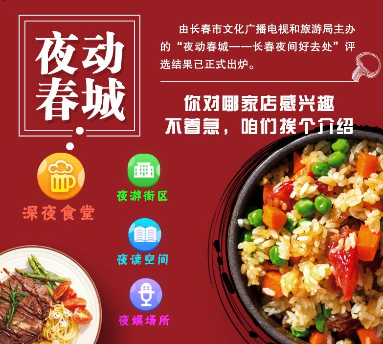文旅主厨,助推“深夜食堂”熙熙攘攘的夜间街市,鼎沸的人声和食物的香气,这繁华的场景与长春市文化广播电视和旅游局举办的“夜动春城——长春夜间好去处”系列十佳项目评选是分不开的。根据长春夜间消费特点,长春市文化广播电视和旅游局适时推出了“夜动春城”评比活动,共设有“十佳夜游街区”“十佳深夜食堂”“十佳夜娱场所”“十佳夜读空间”四大系列170个奖项。