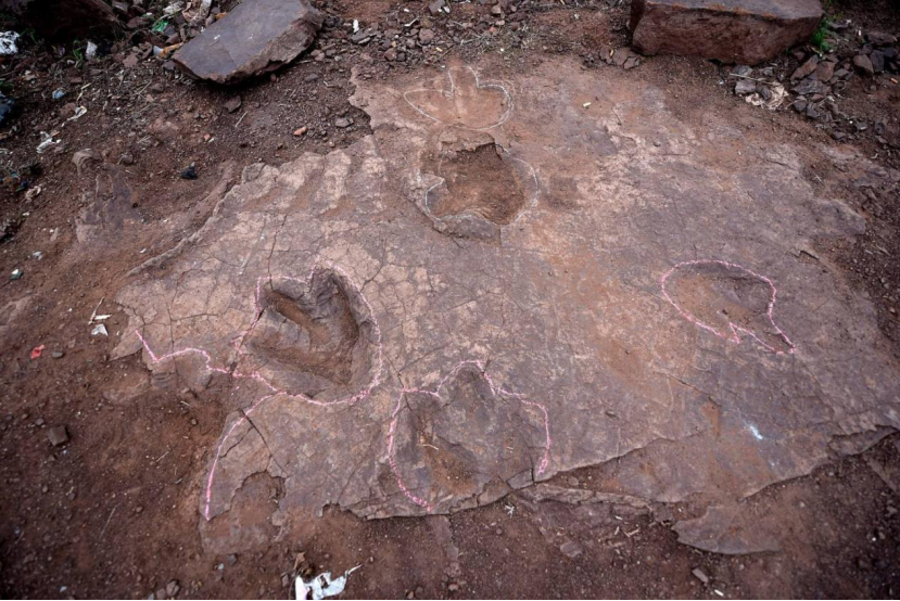 广东南雄发现一批珍稀的鸭嘴龙类恐龙足迹化石,图片来源 nigpas