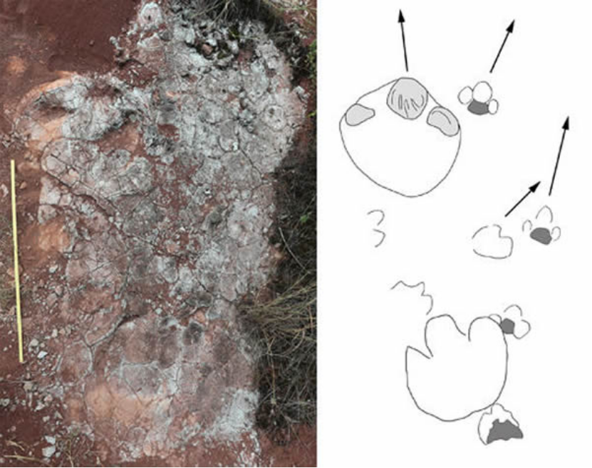 专家判断足迹化石的主人为白垩纪早期恐龙,距今约1.3亿年。这是四川盆地北缘(广元、巴中和南充)第一次发现白垩纪恐龙足迹,表明约一亿年前此地有恐龙活动。(PS:在北京延庆硅化木国家地质公园内,专家也曾发现过大量的恐龙足迹化石,这也是北京地区首次发现恐龙存活过的证据。)